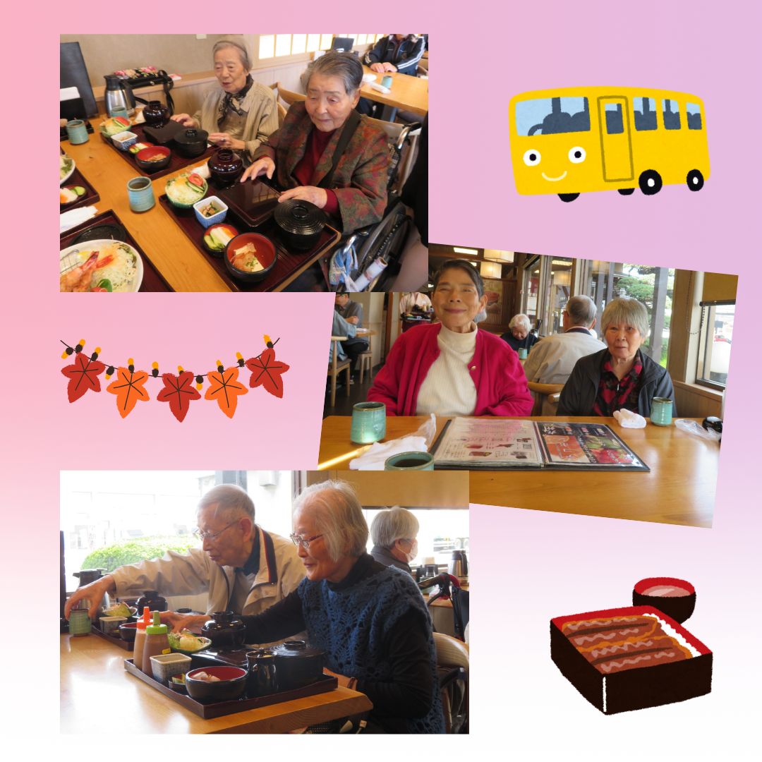 「秋の食事会~鰻を食べて夏の疲れを吹き飛ばそう!!」を開催しました。 秋晴れの空のもと、12名のご入居者さまが参加され、バスに乗って外出。 ドライブ気分を楽しみながら目的地へと向かいました。 お店に到着すると、香ばしい鰻の香りが漂い、早速「おいしそう!!」との声。 会話が弾み、「美味しいね」「元気が出るね」との声が聞かれました。 帰りの車中では「また外食会に参加できるように元気でいなくちゃね!」「楽しい時間だったね」との感想が聞かれました。 おいしい食事と心地よい交流で、皆様の活力がいっそう高まった一日となりました。 ![]() 令和7年度 インフルエンザ及び新型コロナワクチン接種について 2025年10月28日