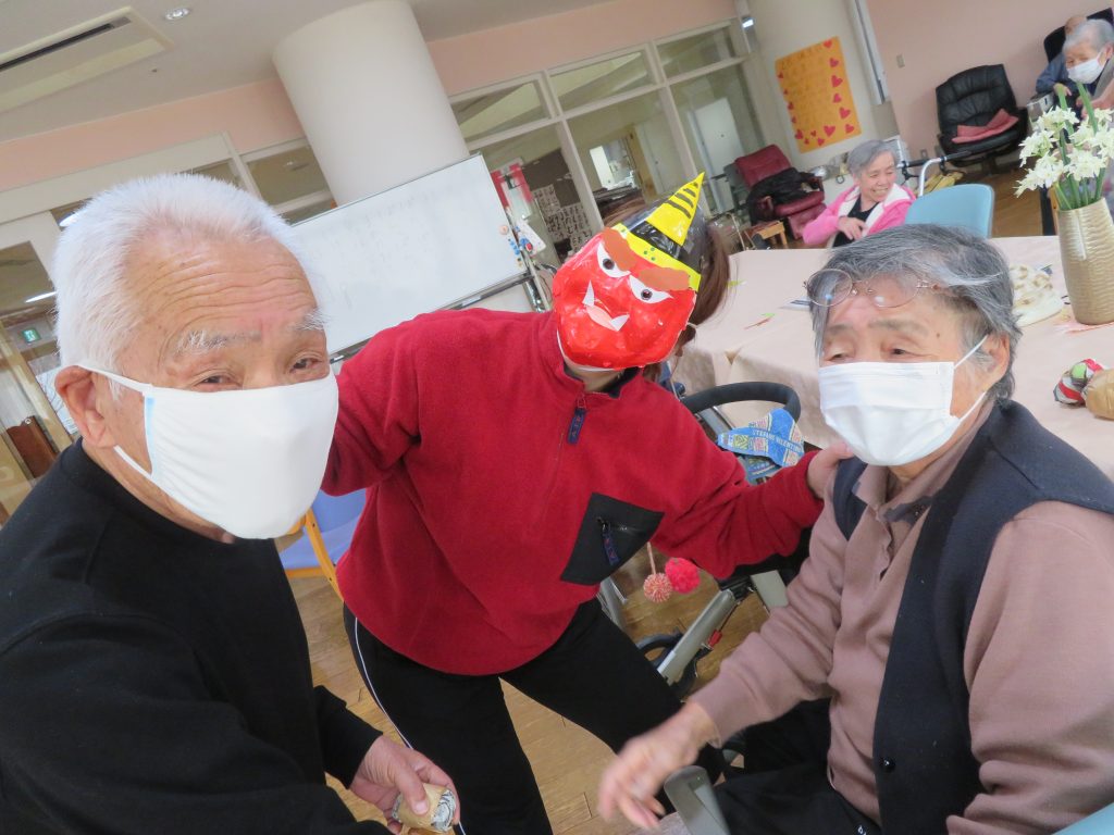 節分の日。四方八方から投げられる豆に最後は鬼も倒れてしまいました。(^^)/