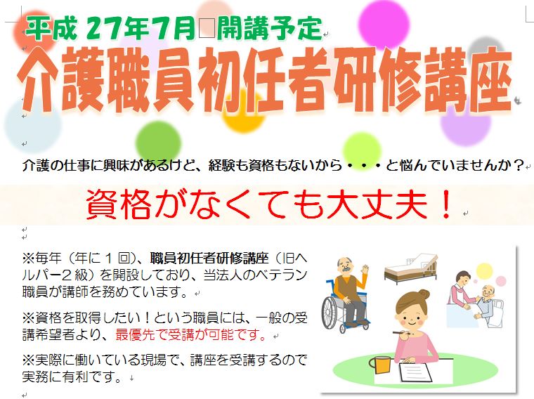 平成27年度「介護職員初任者研修講座」の申込受付を開始しました。