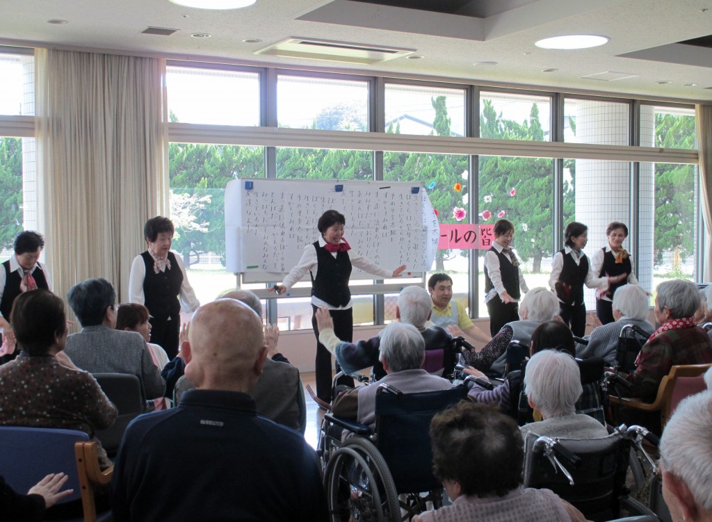 ご利用者様も一緒に手振りをしながら、大きな声で歌い、一緒にコーラスを楽しんでいらっしゃいました。