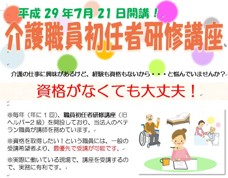 今年も「介護職員初任者研修講座」を開催いたします。