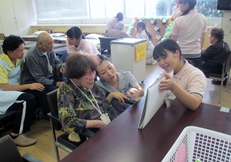 慶成高校福祉科の皆様より文化祭にお招き頂き、生徒さんの手作りの1日限定「慶成デイサービス」に当苑のご利用者様も参加されました。