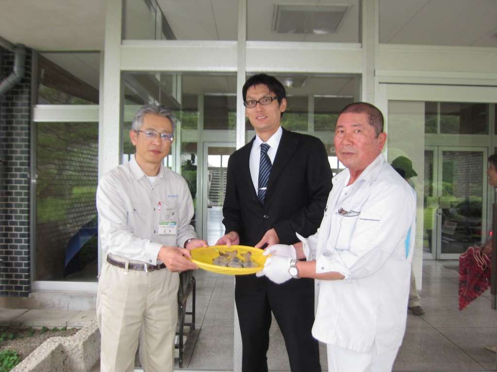 平成16年より、毎年、北九州市内の福祉施設に井手浦浄水場で飼育したヤマメを提供されており、今年はケアハウスさくらの利用者様にと、法人代表が訪問し受贈いたしました。(写真は贈呈式の模様です)